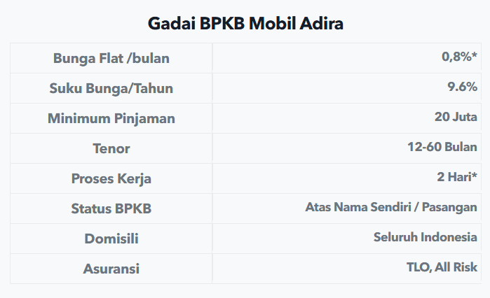 Saya butuh dana cepat untuk biaya masuk kuliah anak. Pinjam lewat jaminan BPKB mobil, prosesnya cepat dan pelayanannya ramah. Sangat membantu di saat mendesak. Terimakasih Adira Finance
